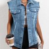 With the Battle Denim Vest, you become a force to be reckoned with. Its light blue hue symbolizes your defiance against the mundane, while its cryptic symbols and buttons hint at the secrets you hold within. Whether you’re attending a gothic gathering or simply embracing your inner darkness, this vest will empower you to conquer the night.