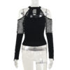 The cold shoulder design adds a touch of mystery to your ensemble, hinting at the secrets that lie beneath. Its slim fit accentuates your curves, creating a silhouette that commands attention. Whether you’re casting spells or simply embracing the night, this top will empower you to embrace your dark side.