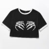 Unleash your inner goth goddess with Grabby Crop, a macabre masterpiece that will make you the envy of the crypt. Its haunting black and white print whispers tales of ancient rituals and forbidden desires, while its slim fit accentuates your curves like a seductive shadow.