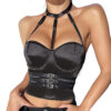 The adjustable straps of our Halter Top caress your curves, creating a silhouette that is both alluring and enigmatic. Its short length reveals a tantalizing glimpse of skin, adding a touch of sensuality to your macabre ensemble. Whether you’re dancing beneath the moonlight or casting spells in the dim candlelight, this top will amplify your enigmatic presence.
