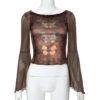The vibrant butterfly print is a symphony of darkness and delight, featuring intricate patterns that evoke the macabre and the festive. The rich brown hue adds depth and mystery, while the delicate butterflies flutter with a sense of ethereal beauty. This top is a testament to the duality of your nature, embracing both the darkness and the light within.