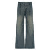 Step into the realm of the macabre and embrace the enigmatic allure of our Retro Distressed Split Pocket Jeans. Crafted from the finest denim, these jeans whisper tales of forgotten nights and cryptic rituals. Their deep blue hue evokes the midnight sky, adorned with distressed details that hint at a past shrouded in mystery.