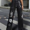 Adorned with cryptic symbols and macabre motifs, these jeans are a testament to your unique and enigmatic style. The high-rise waist accentuates your curves, while the straight leg cut creates a flattering silhouette that will turn heads wherever you go.