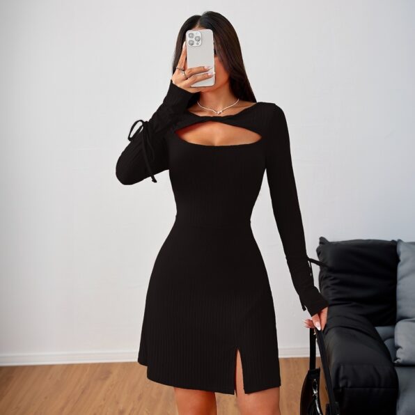 Step into the shadows and let your enigmatic spirit shine in this macabre Slim Fit Red Short Dress. Its twisted and split design whispers tales of cryptic charm, while the cutout details hint at a seductive mystery that will leave them spellbound.
