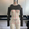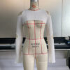 The blouse’s striped stitching dances across your skin like a spectral melody, creating an enigmatic play of light and shadow. The black and white stripes evoke the duality of your soul, a haunting contrast that draws the eye.