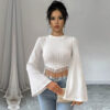Unleash your inner goth goddess with our Tassel Bell Sleeve Top, a macabre masterpiece that will ignite your enigmatic allure. Its ethereal white hue whispers secrets of moonlit nights, while its intricate embroidery dances like shadows on your skin.